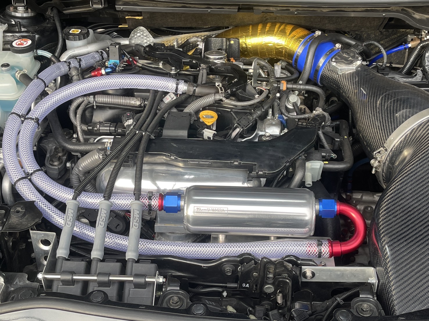 | タービンGarrett G30-660 タービン ターボスマートウエストゲート インジェクターメイン1500cc x3 GReddy GTR用インタークーラー Revolution S.P.L Revolution オイルクーラー MTクーラー、TFクーラー Revolution ワンオフターボサクションパイプ Revolution ワンオフG30用エキマニ ビレット大容量サージタンク 65パイビッグスロットル Revolution ワンオフイグニッションコイル ガレージMAEDA ミッションオイルキャッチタンク |